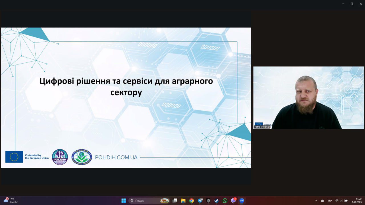 17 вересня 2025 року Петро Пивовар представив POLIDIH на експертній онлайн-дискусії DigiAgrar_UA.
