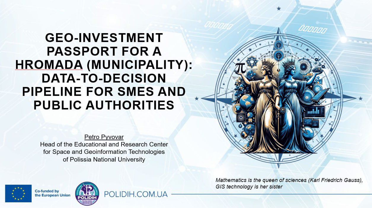 Під час сесії Петро презентував практичний кейс POLIDIH: Geo-investment passport for a hromada (municipality): data-to-decision pipeline for SMEs and public authorities.
